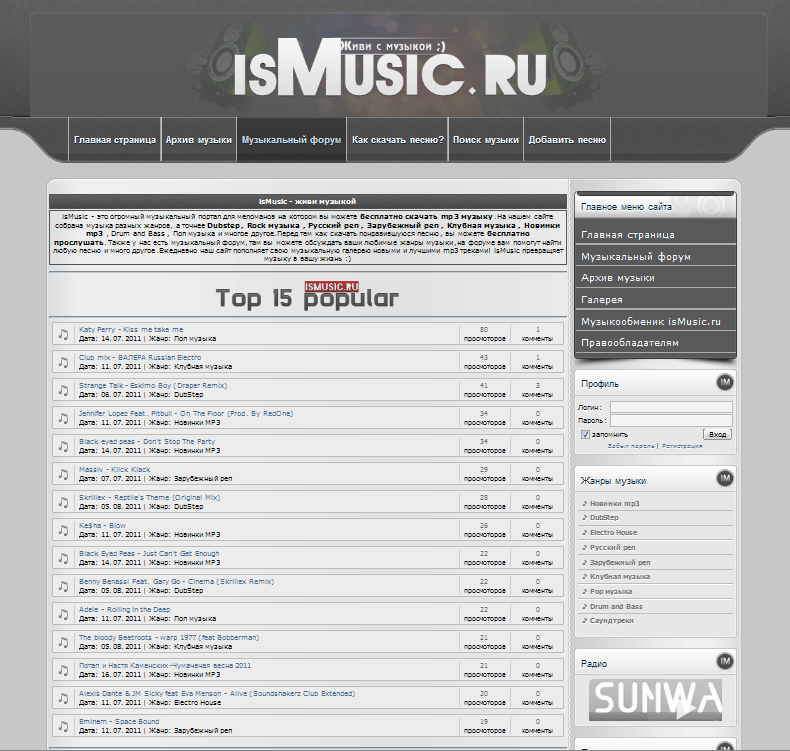 RIP шаблона сайта ismusic.ru для ucoz