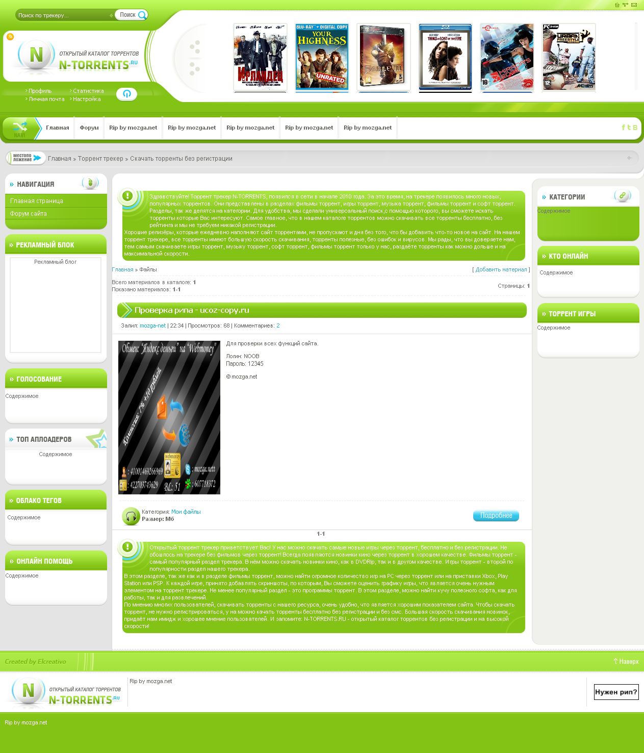РИП шаблона сайта n-torrents.ru для ucoz
